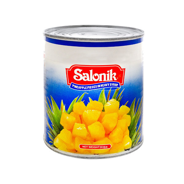 کمپوت آناناس 3035 گرمی سالونیک (تیکه)Salonik Canned Pineapple Chunks in Syrup-3035g